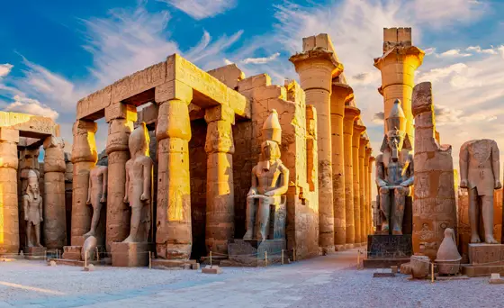 A continuación, la visita dará paso a una asombrosa vista panorámica al famoso templo funerario de la reina Hatchepsut. Después, podrá conocer el templo funerario de Ramsés III conocido también por Madinat Habu, Posteriormente admiraremos los restos del Templo de Amenofis III, recinto que le recibirá con los Colosos de Memnon Regresamos al barco. Por la tarde, haremos una excursión a los grandiosos templos de Karnak y Luxor.